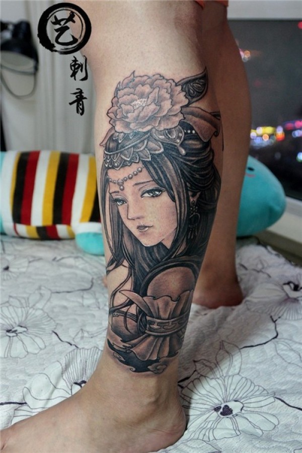 小腿艺妓纹身图案