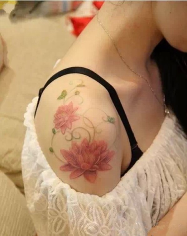 女生肩花纹身_15张女性双肩对称的肩花纹身图案作品图片