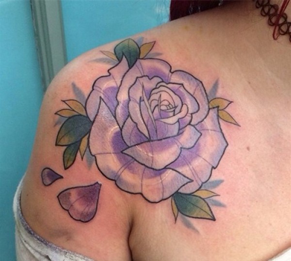 女生肩花纹身_15张女性双肩对称的肩花纹身图案作品图片