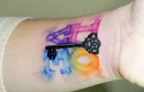 胳膊原创水彩心上钥匙纹身图案