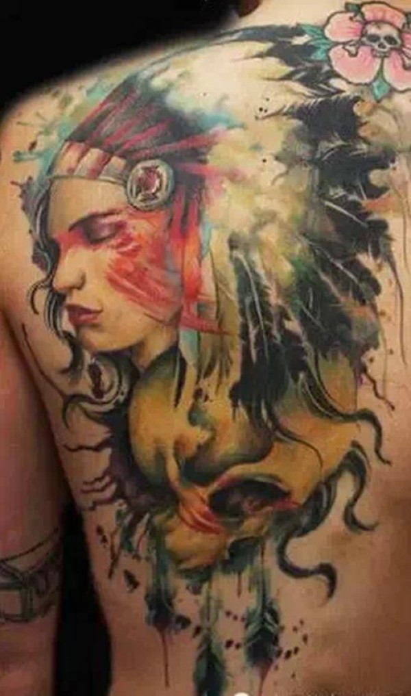 性感女生满背创意文身作品