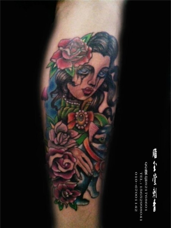 传统花腿纹身--18张传统风格的大花腿纹身图案作品