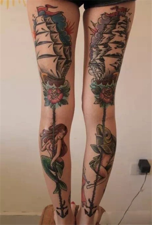 传统花腿纹身--18张传统风格的大花腿纹身图案作品