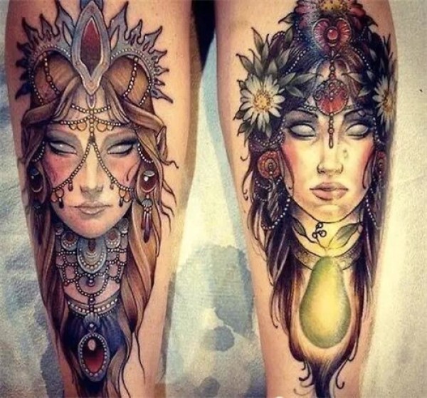 传统花腿纹身--18张传统风格的大花腿纹身图案作品