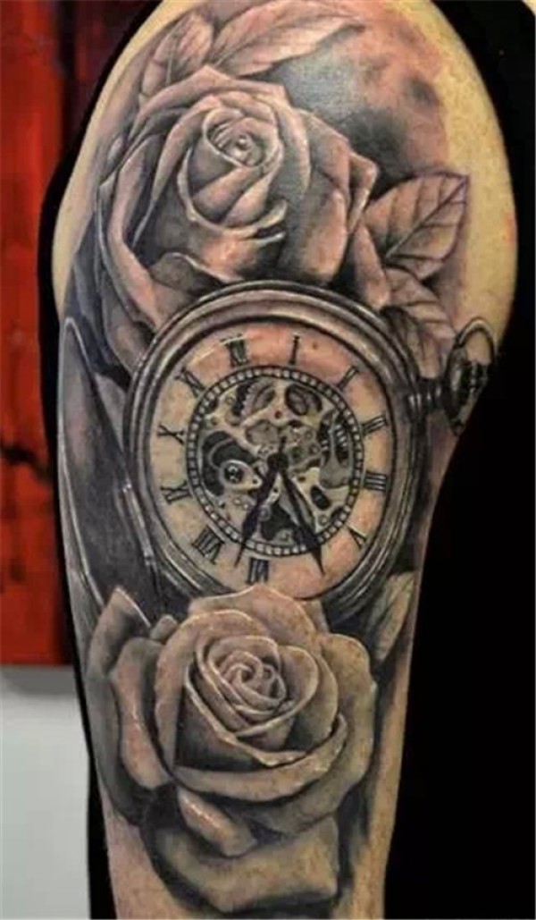 女生肩花纹身_15张女性双肩对称的肩花纹身图案作品图片