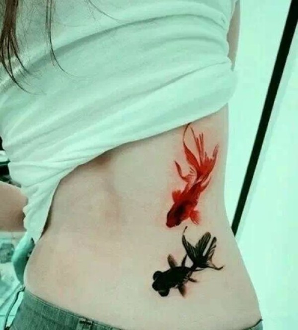 分享一款腰部时尚性感的蝶恋花纹身图案_腰部纹身图案大全_纹身图吧