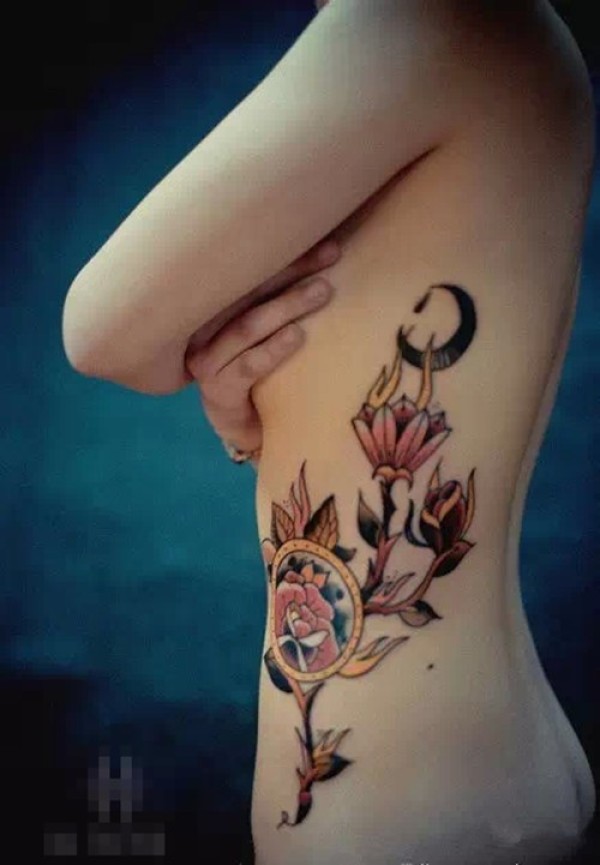 女性腰部莲花花纹刺青_腰部纹身图案大全_纹身图吧