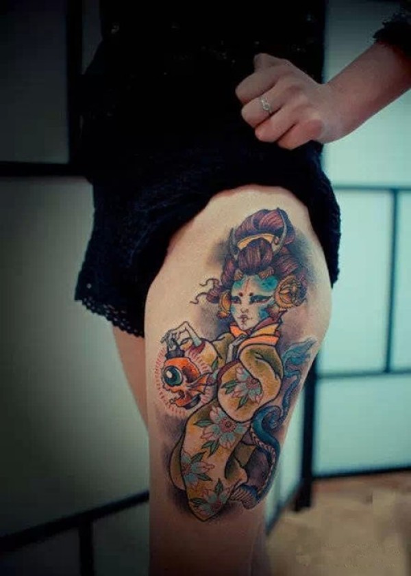 传统花腿纹身--18张传统风格的大花腿纹身图案作品