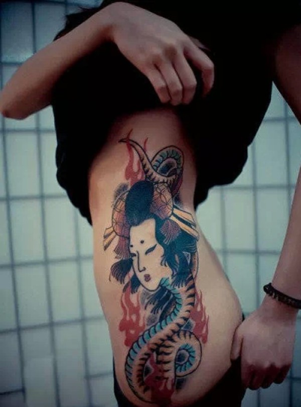 传统花腿纹身--18张传统风格的大花腿纹身图案作品