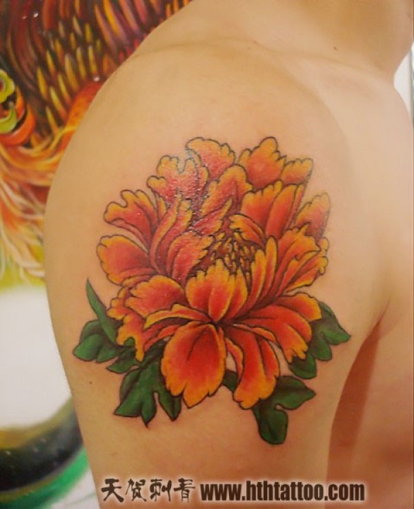 北京朝阳纹身之牡丹花纹身,天贺刺青纹身作品