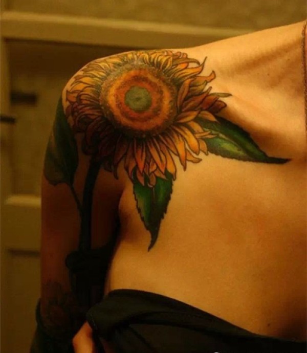 女生肩花纹身_15张女性双肩对称的肩花纹身图案作品图片
