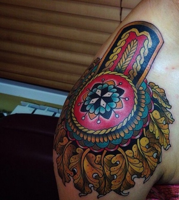 女生肩花纹身_15张女性双肩对称的肩花纹身图案作品图片