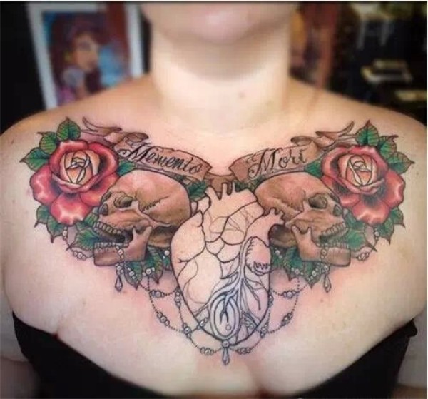 女性大花胸纹身_43张霸气漂亮的女性大花胸纹身图案作品