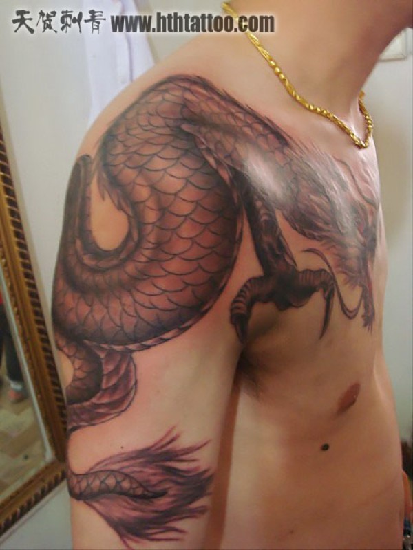 深受男士喜爱的披肩龙纹身