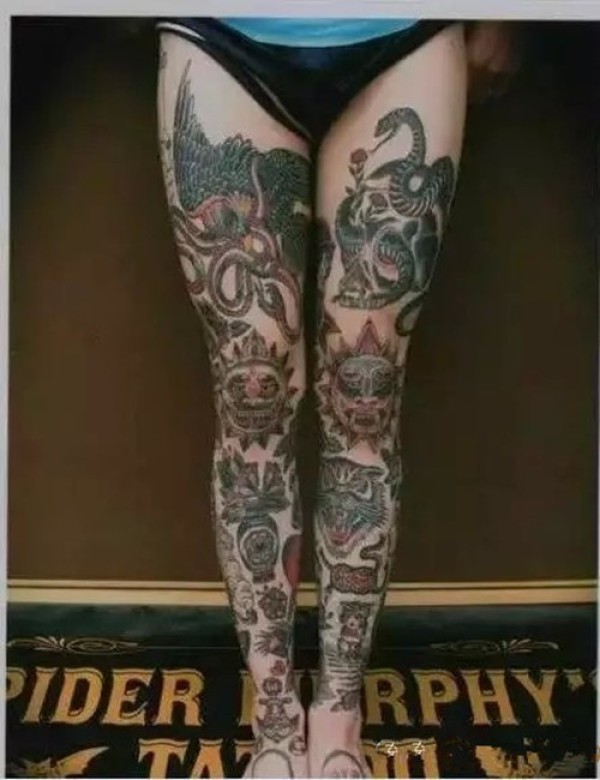 花腿纹身--一组大黑腿纹身图案作品欣赏