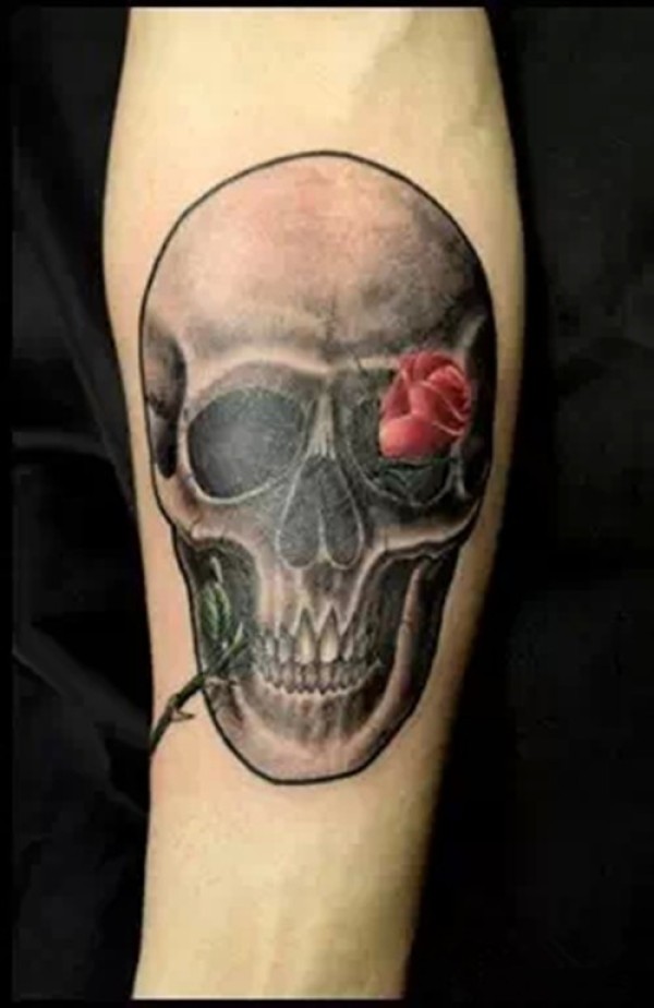 女生手臂经典潮流的骷髅与玫瑰花纹身图案