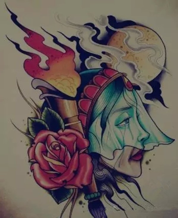 传统艺妓般若纹身图案手稿