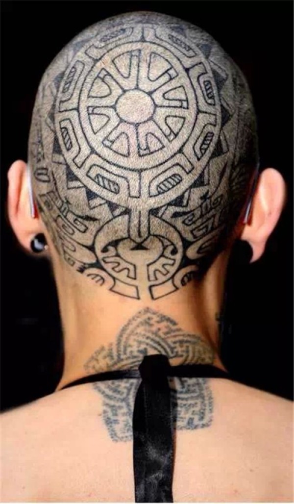 霸气男头部时尚纹身图片_头部纹身图案大全_纹身图吧