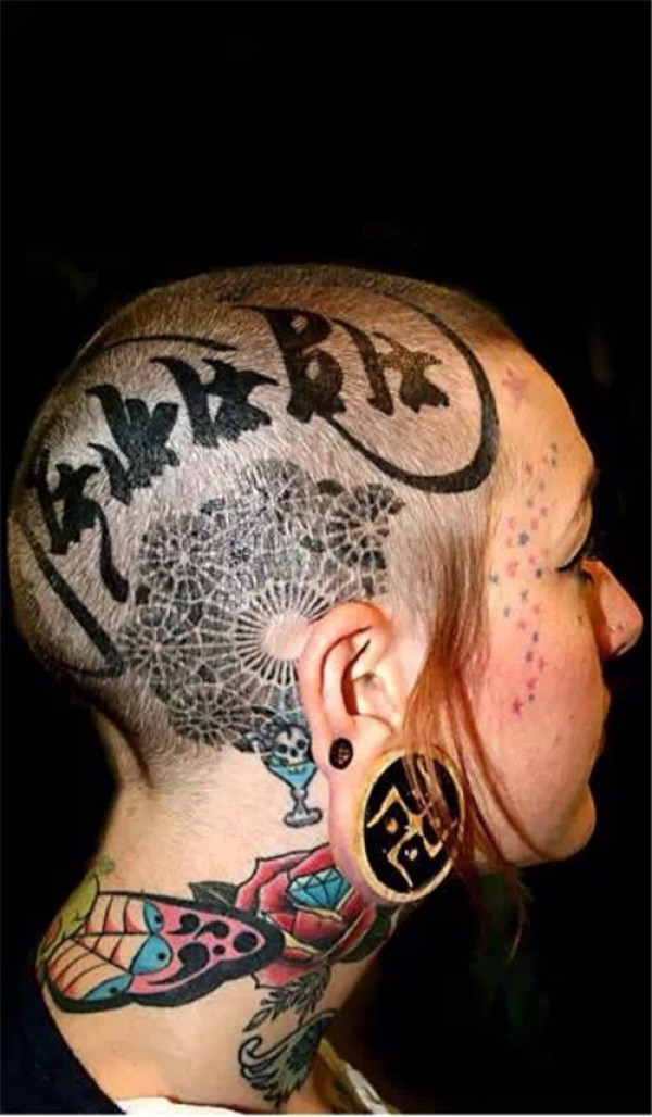 霸气男头部时尚纹身图片_头部纹身图案大全_纹身图吧