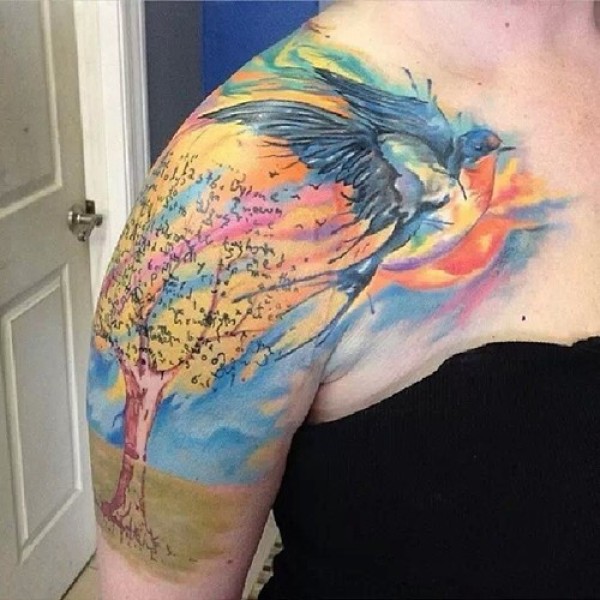 手臂一款彩色蘑菇纹身图案_臂部纹身图案大全_纹身图吧