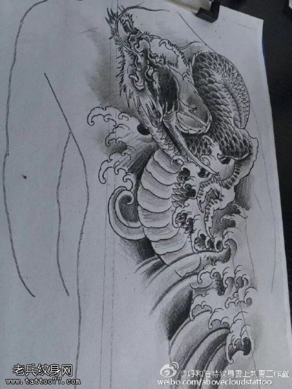 龙纹身手稿_一组老传统黑灰龙手稿纹身图案