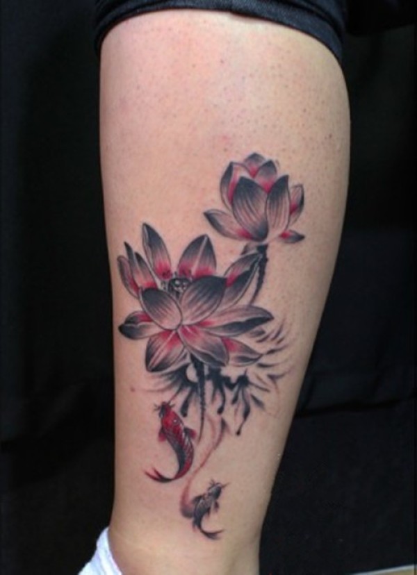传统鲤鱼花小腿纹身_腿部纹身图案大全_纹身图吧