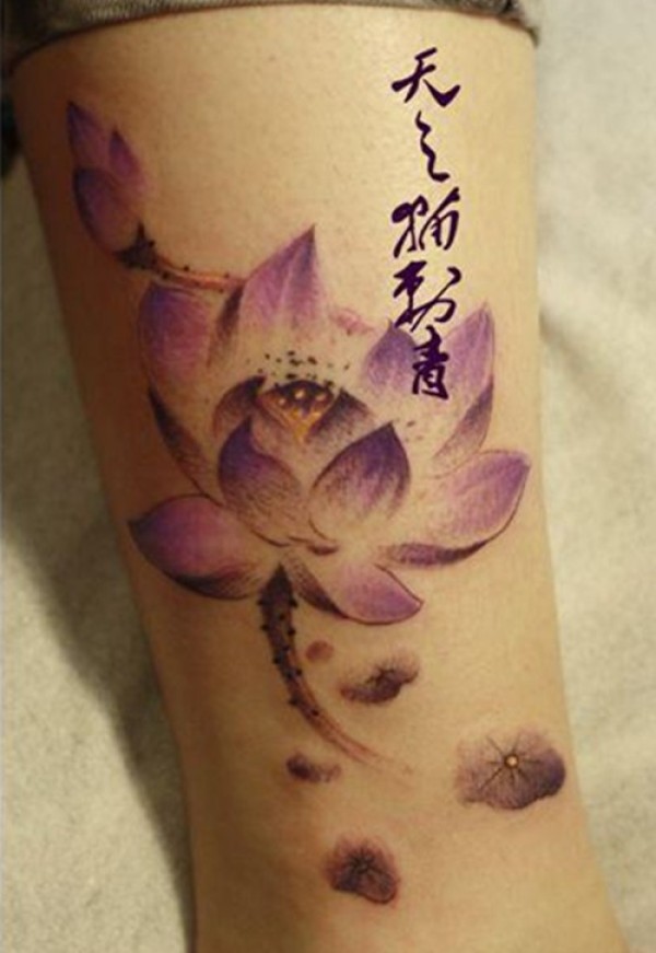 传统鲤鱼花小腿纹身_腿部纹身图案大全_纹身图吧