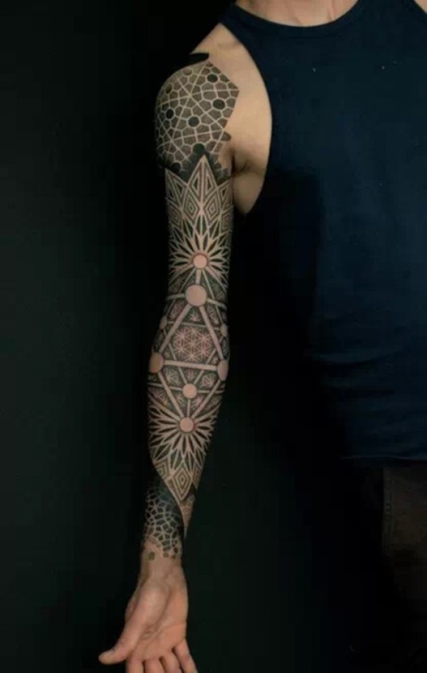25款男性黑色手臂线条纹身点刺技巧半甲纹身图案