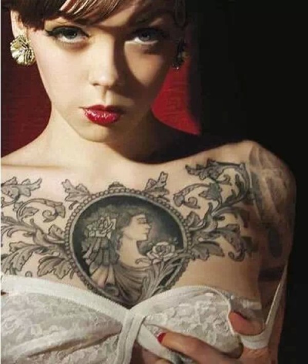 这是一个很让人遐想的纹身,我看到的时候邪恶_胸部纹身图案大全_纹身图吧