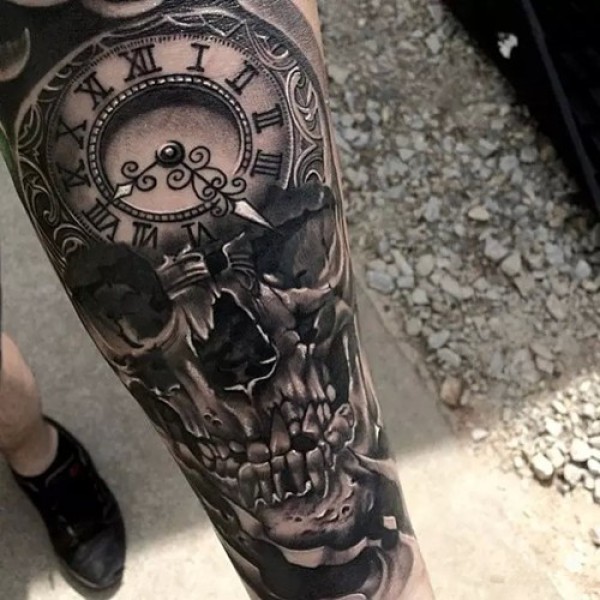 超帅时尚的黑灰骷髅与蛇纹身图案