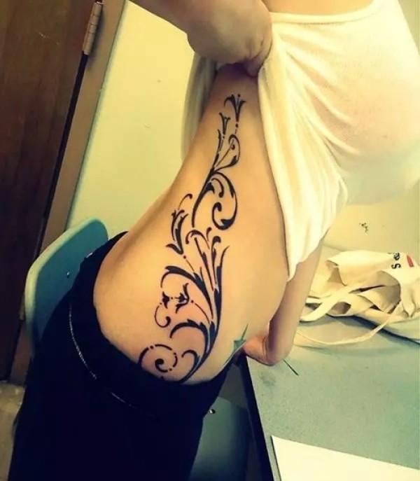 女性腰部莲花花纹刺青_腰部纹身图案大全_纹身图吧