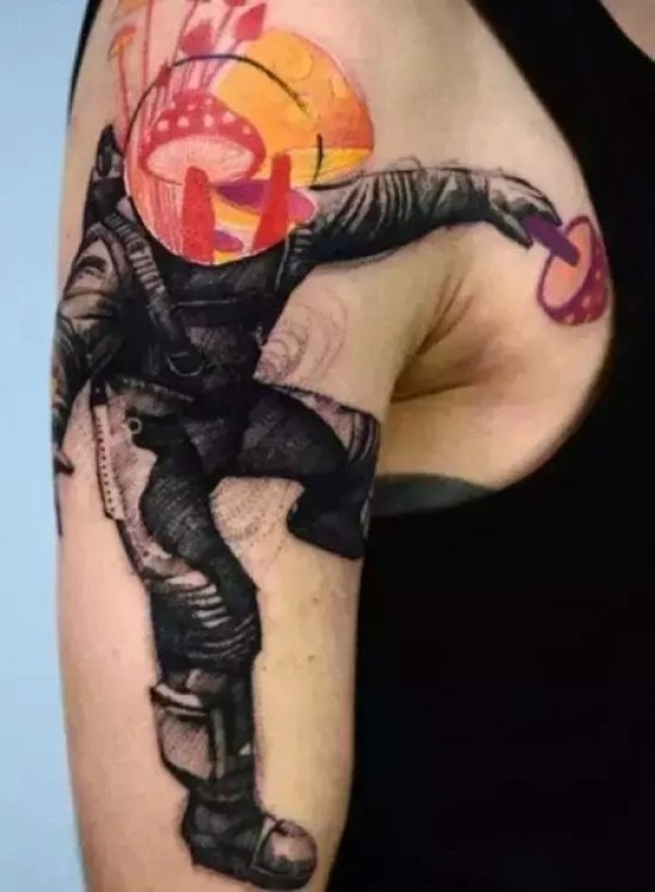 手臂一款彩色蘑菇纹身图案_臂部纹身图案大全_纹身图吧