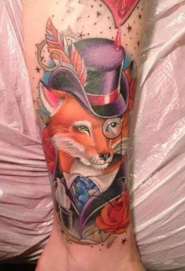 好看的腿部狐狸纹身
