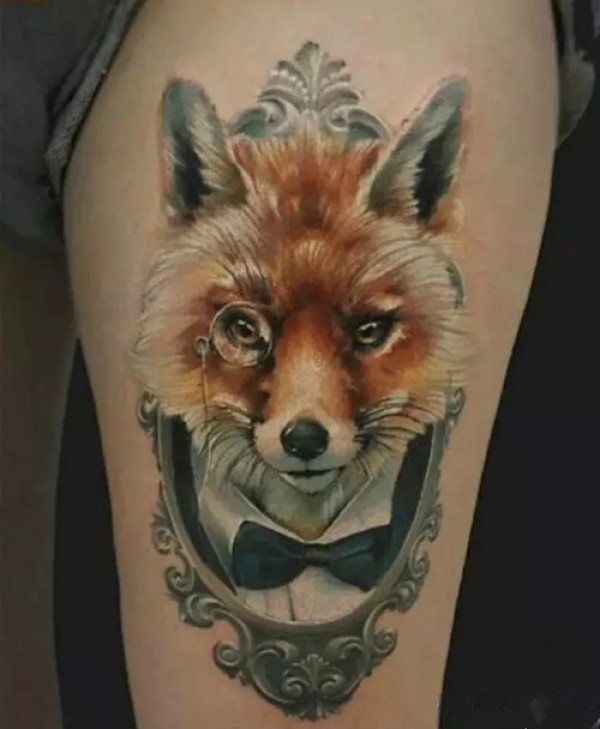 好看的腿部狐狸纹身