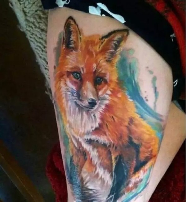 好看的腿部狐狸纹身