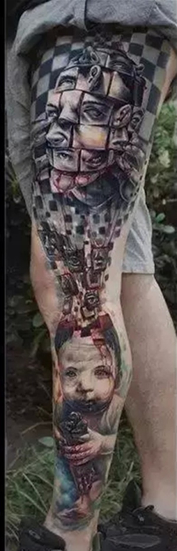 花腿纹身--一组大黑腿纹身图案作品欣赏