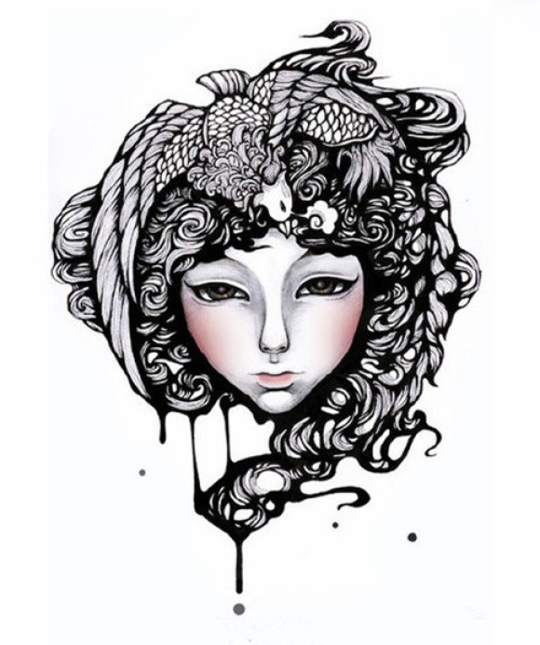 双鱼座纹身手稿_45张十二星座之双鱼手稿纹身图案