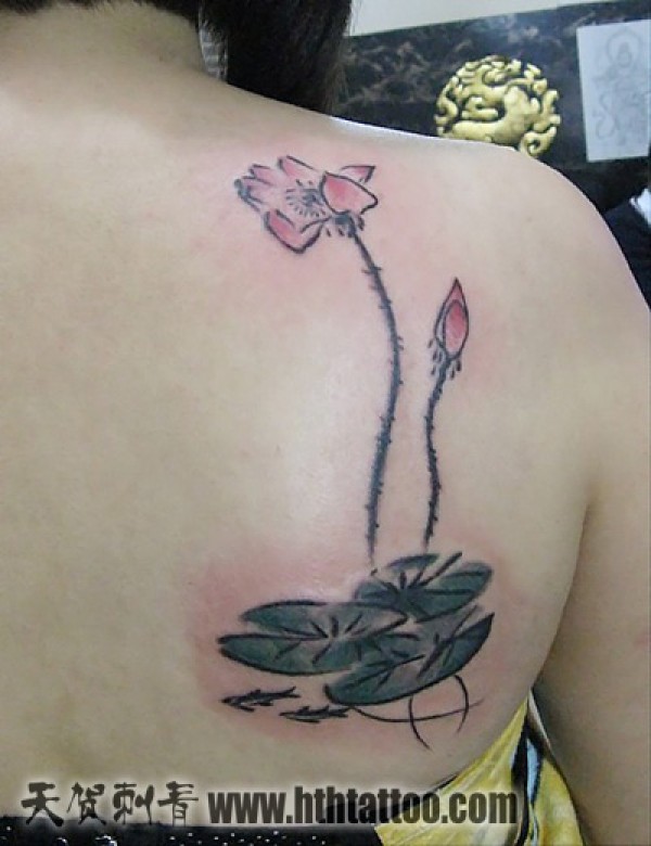 北京纹身作品水墨莲花纹身,天贺刺青纹身作品