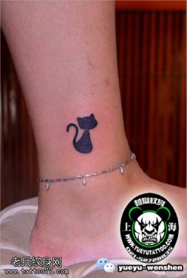 脚腕上的小猫咪纹身图案