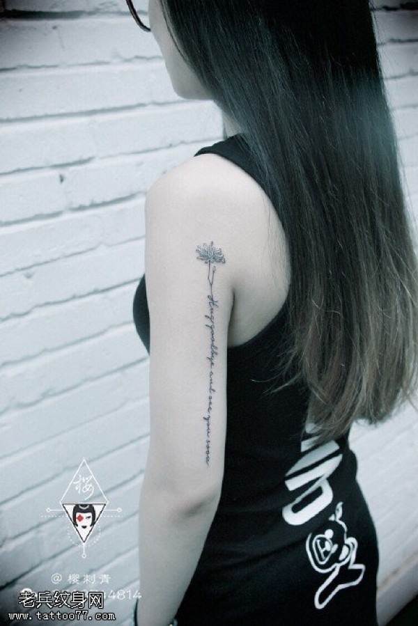 后肩唯美花藤英文图案图片_植物纹身图案大全_纹身图吧