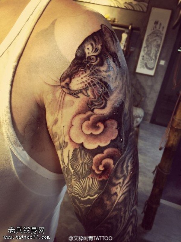 霸气半胛老虎纹身_动物纹身图案大全_纹身图吧