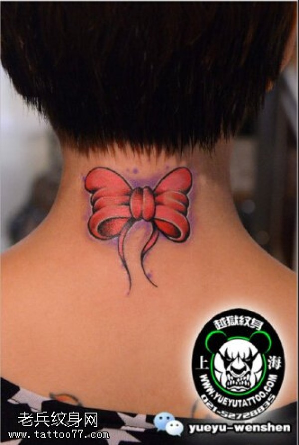 脖子上的蝴蝶结纹身图案