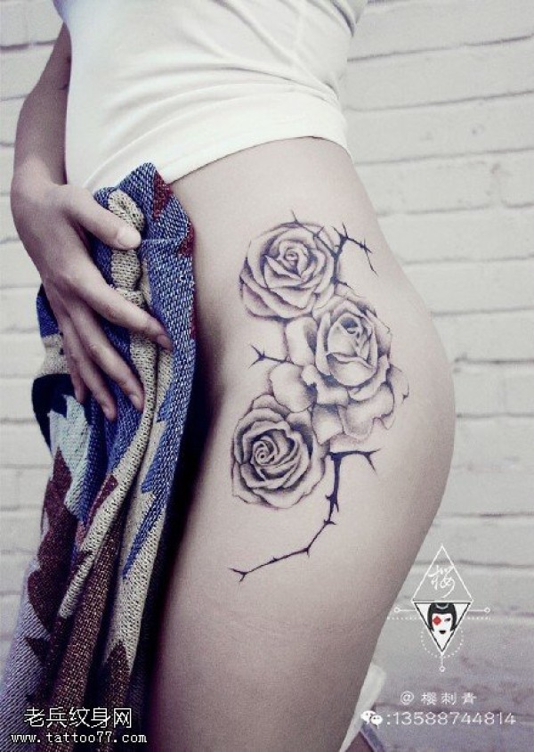 欧美玫瑰纹身 男生手臂上花朵纹身图片