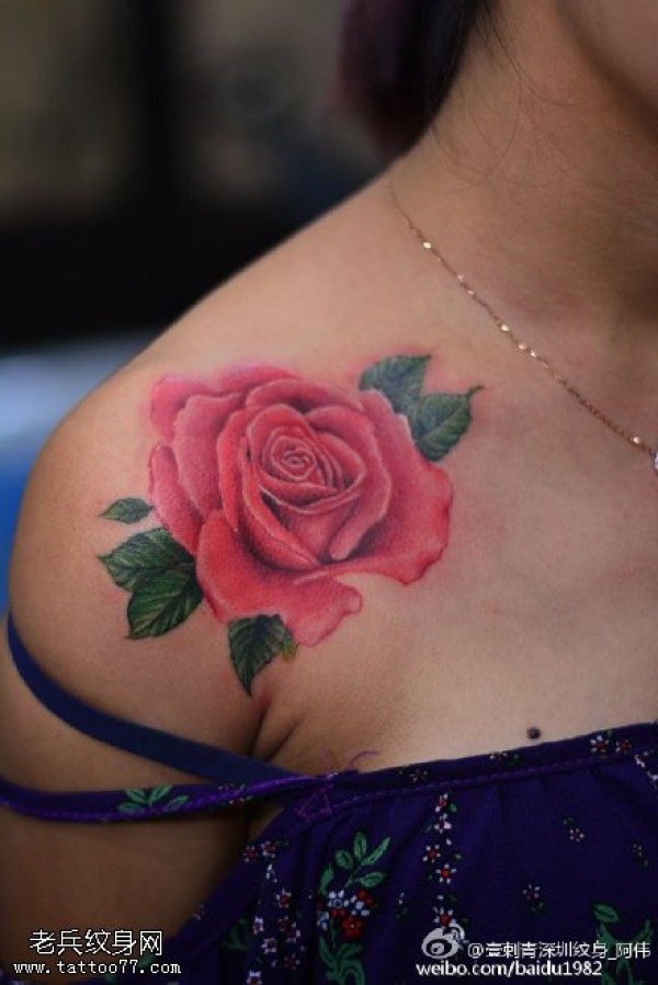 女生肩花纹身_15张女性双肩对称的肩花纹身图案作品图片