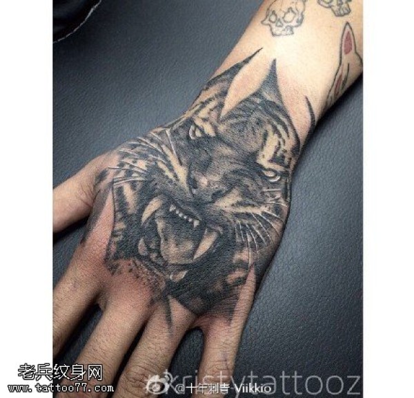 手面上可恶的老虎纹身图案