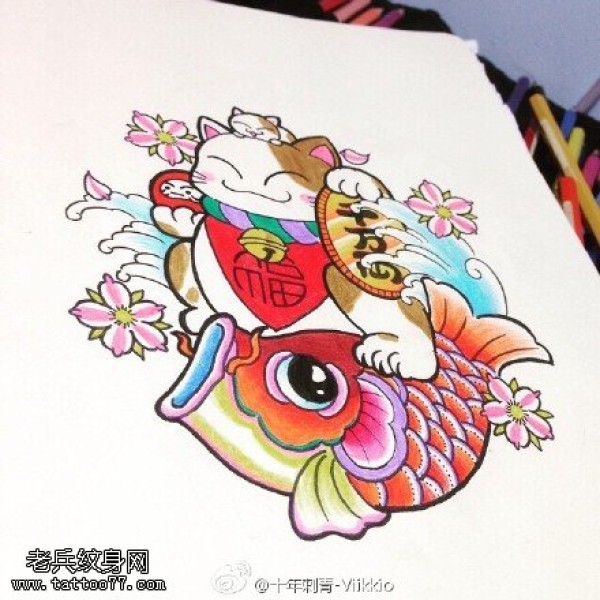 双鱼座纹身手稿_45张十二星座之双鱼手稿纹身图案