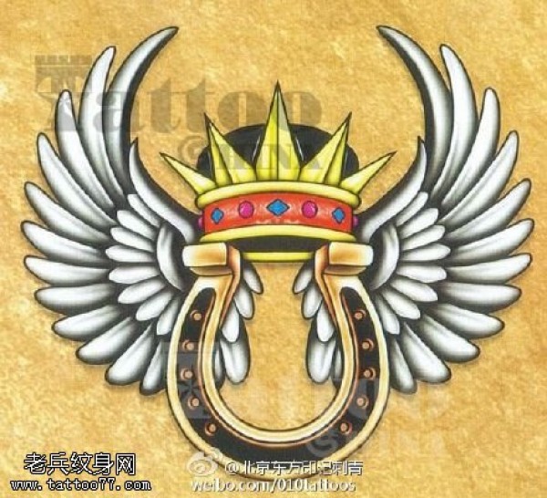 彩绘皇冠翅膀纹身图案