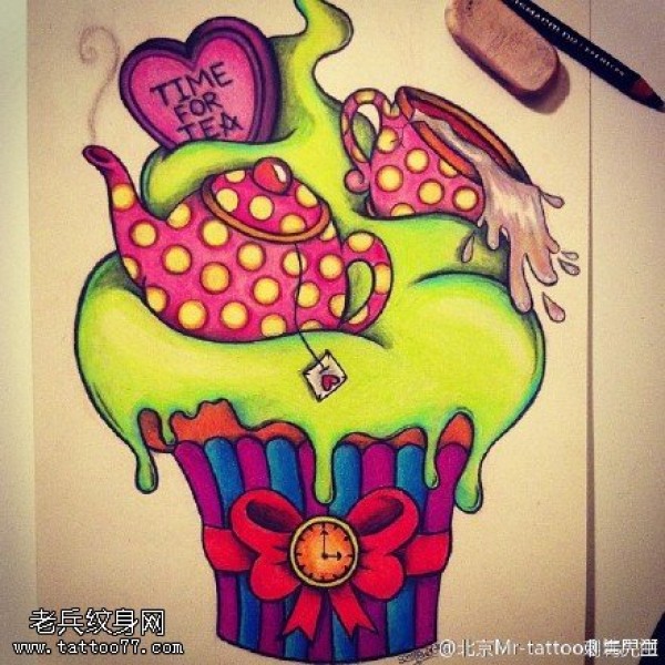 精美彩绘冰激凌纹身图案