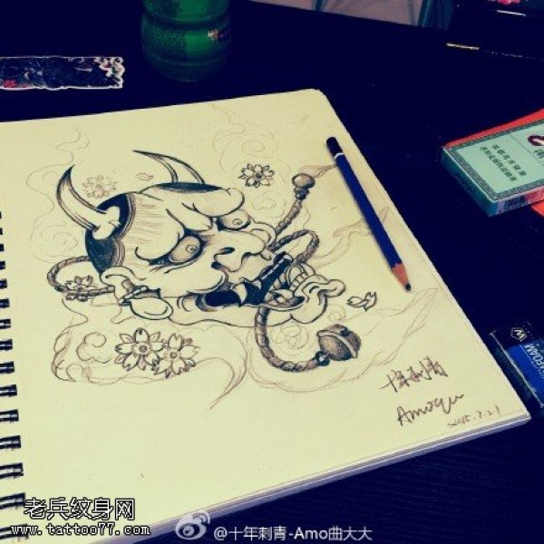 传统艺妓般若纹身图案手稿