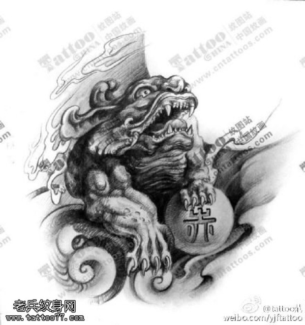 龙纹身手稿_一组老传统黑灰龙手稿纹身图案